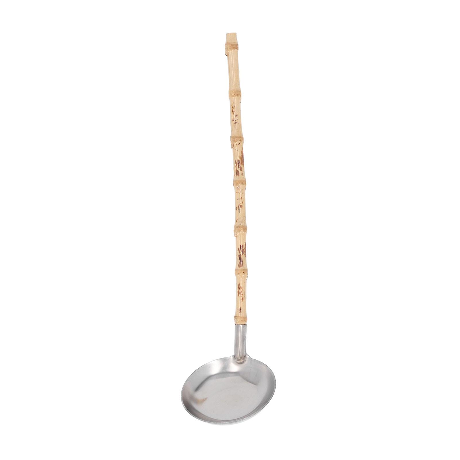 Stainless Steel Pot Ladle Anti-scald Heat Insulation Long Handle Soup Spoon with Bamboo Handle