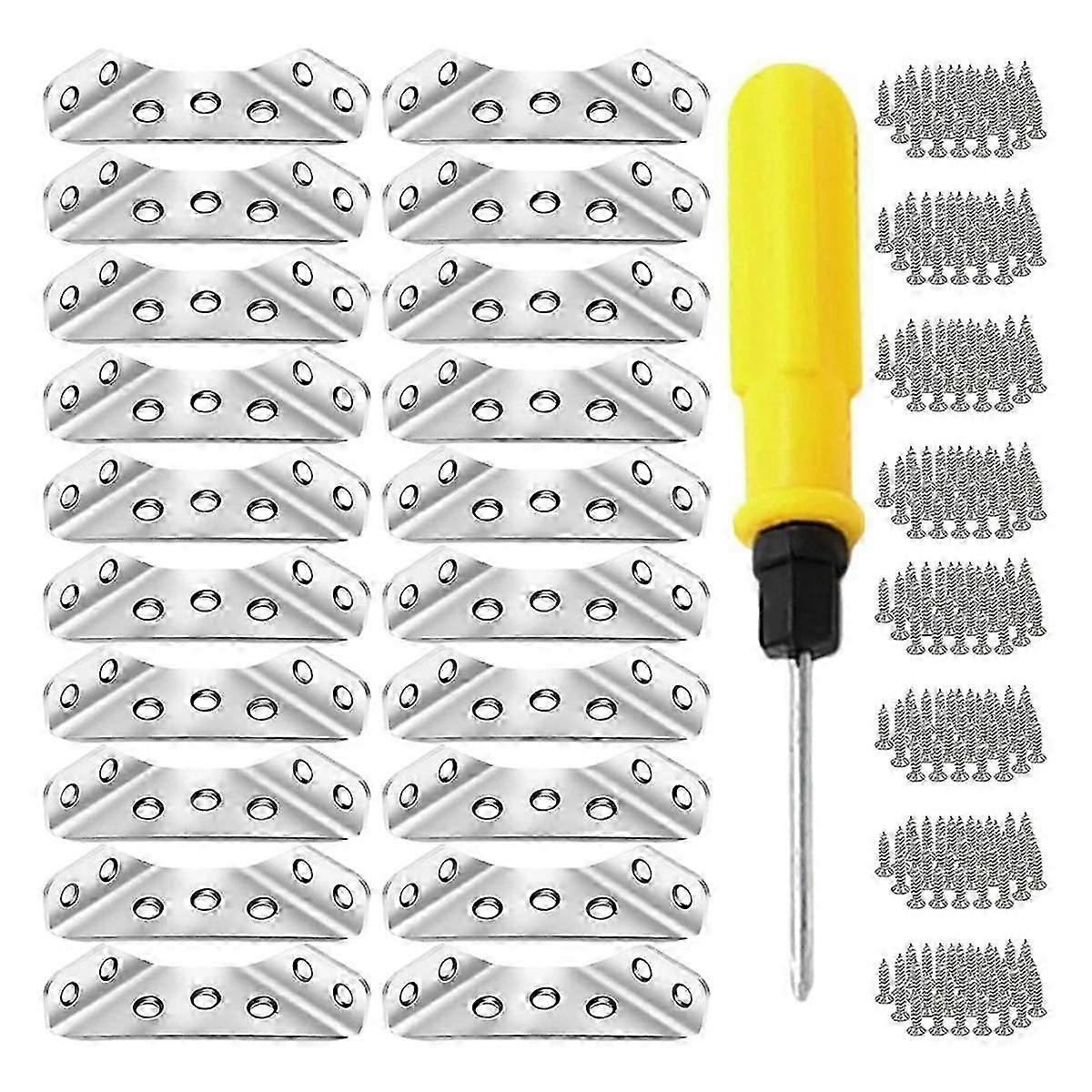 Universal Stainless Steel Furniture Corner Connector,Metal Angle Brackets for Wood with Nails Screwdriver