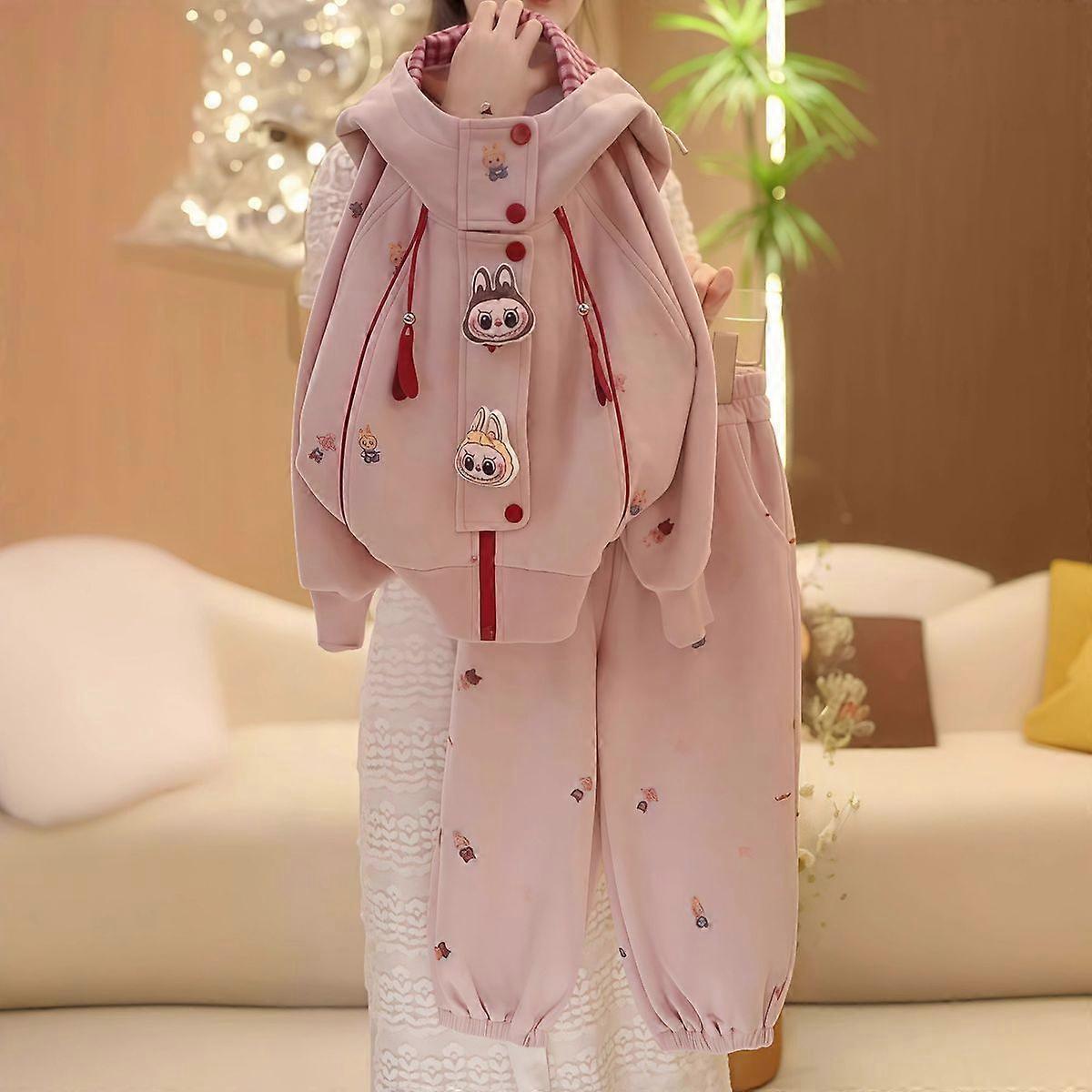 Girls Korean Style 2025 Spring Autumn Hooded Cartoon Casual Set Towel Fabric Shorts Outfit Lala Cloth with Doll Yellow Pink Big Kids 8-16 Years