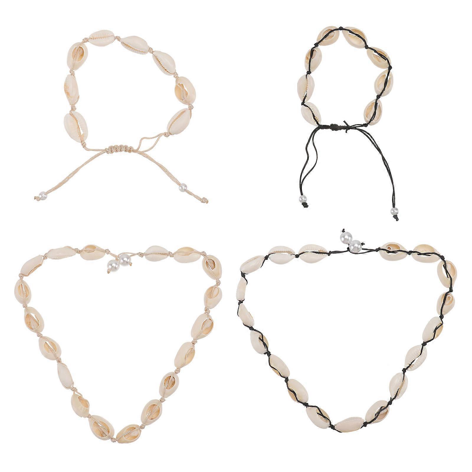 Assorted Color 1Set Creative Summer Shell Bangle Necklace Handmade Design for Women Daily Wear Accessories
