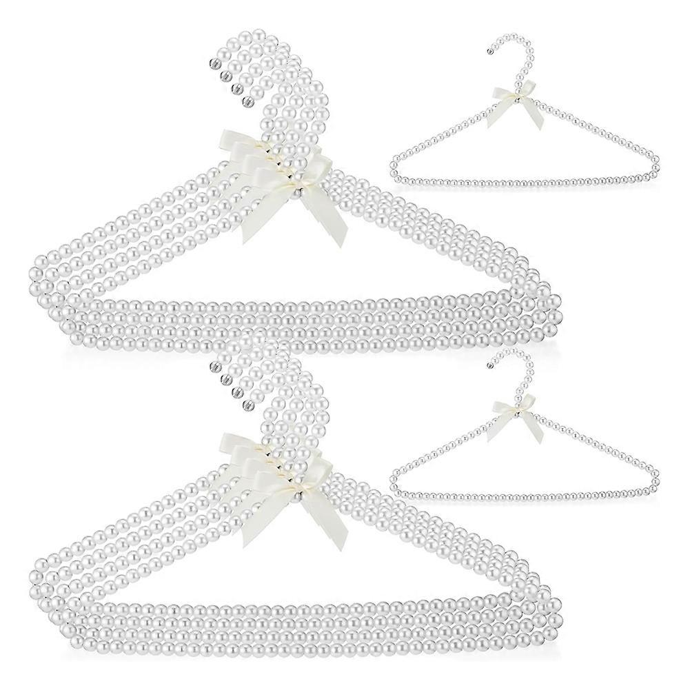 10 Pcs 16 Inch Pearl Clothes Beaded Clothing Hanger with Ribbon Bowknot Metal Elegant Clothes Standard Hanger