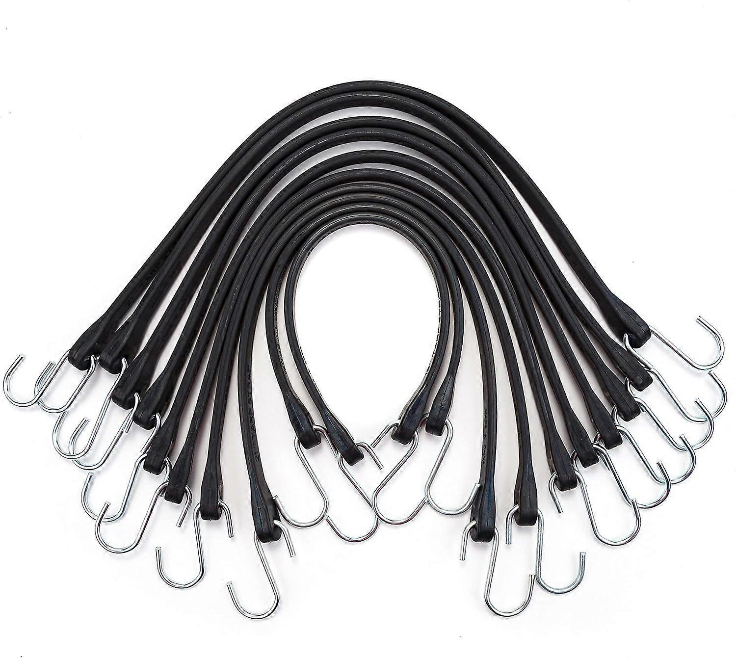 Rubber Bungee Cords Set 10Pack 21 Inch (32” Max Stretch) Heavy Duty Black Tie Down Straps for Outdoor, Tarp Covers Black 21Inch(10PK)