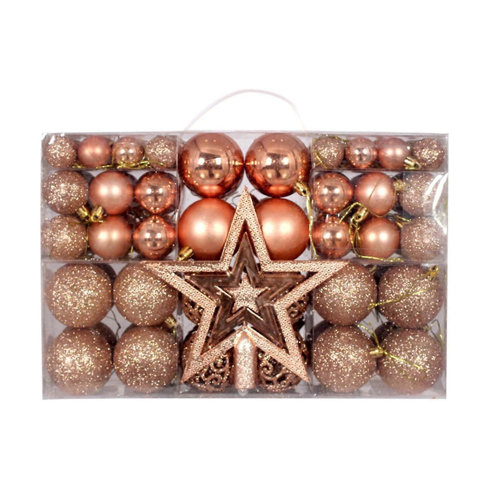 XIUH 101Pc Christmas Baubles Set, 1x Glitter Star Tree Topper & 100x Baubles with Packaging, Indoor/Outdoor Decorations compatible with Christmas