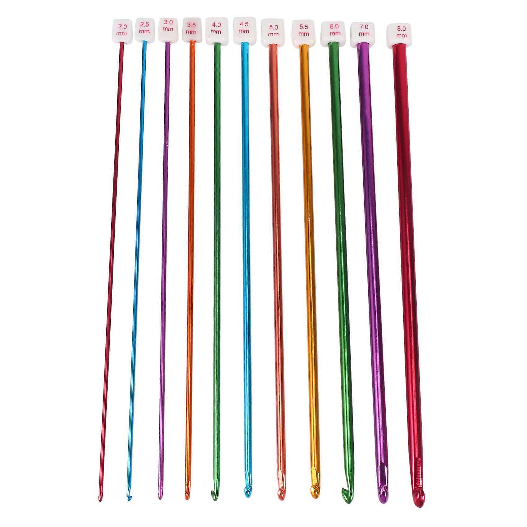 11pcs 10.6" Multicolour Aluminum TUNISIAN AFGHAN Crochet Hook Knit Needles Set 2-8mm