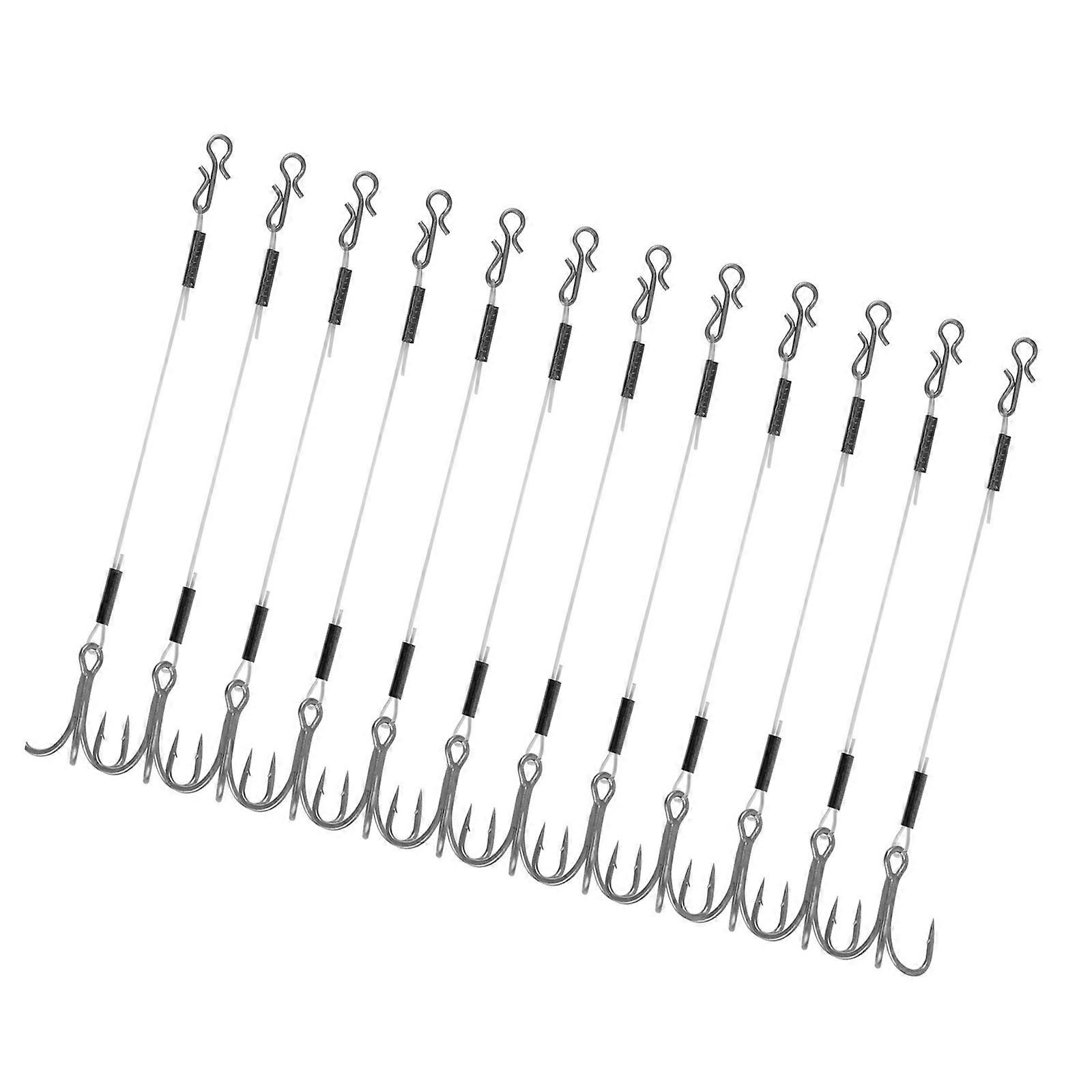 Walleye Bass Hook 12Pcs Quick Snap Trailer Treble Hook for Jig Head 40lbs Fluorocarbon Fishing Line 10/8/6cm Multicolor