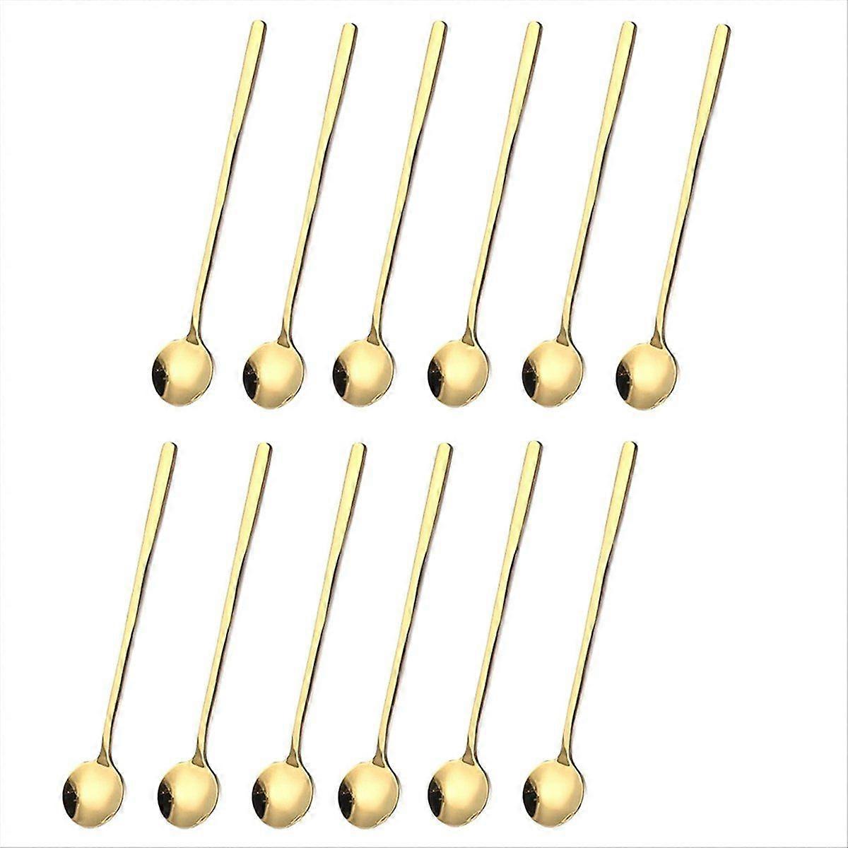 12 Pcs Coffee Spoons Set Gold Tea Spoons Long Handle Stirring Spoons