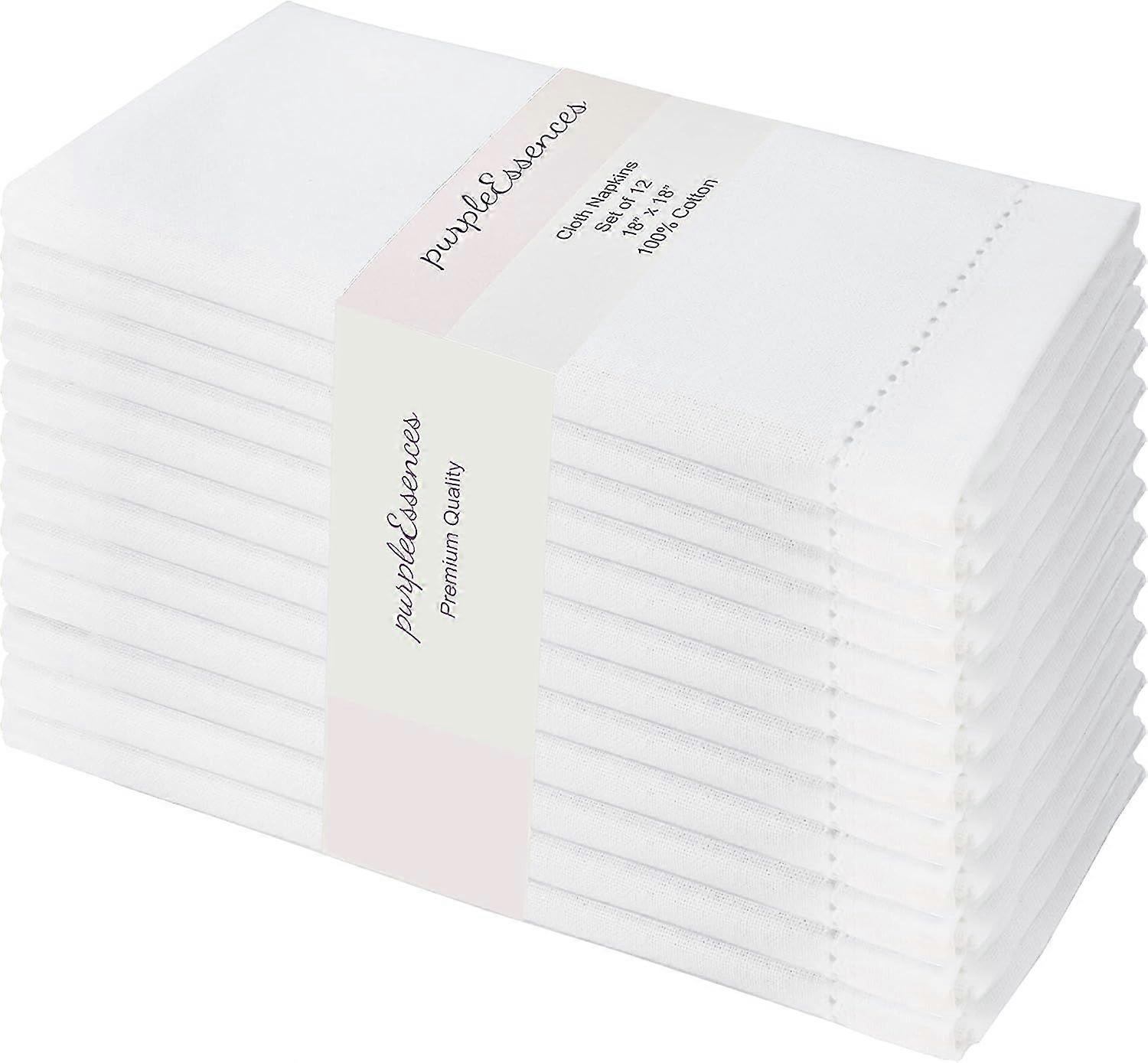 Set of 12 Hemstitch Cloth Dinner Napkins 100% Cotton - Soft Durable Washable -