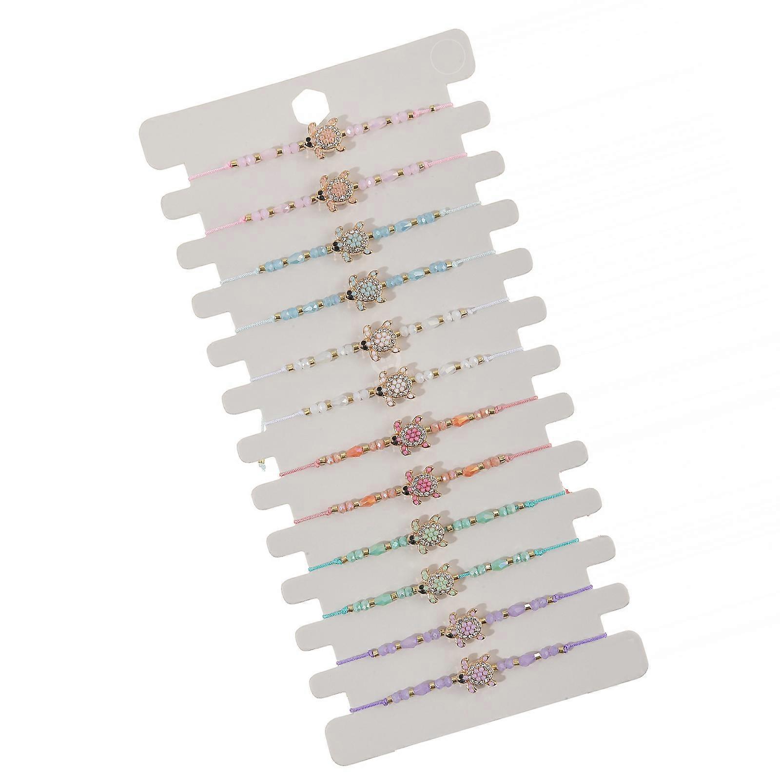 12PCS Handwoven Turtles Theme Bracelet Set Adjustable Wristbands Mixing Alloy Turquoise Stones Crystal Wood Bead Texture Multicolor