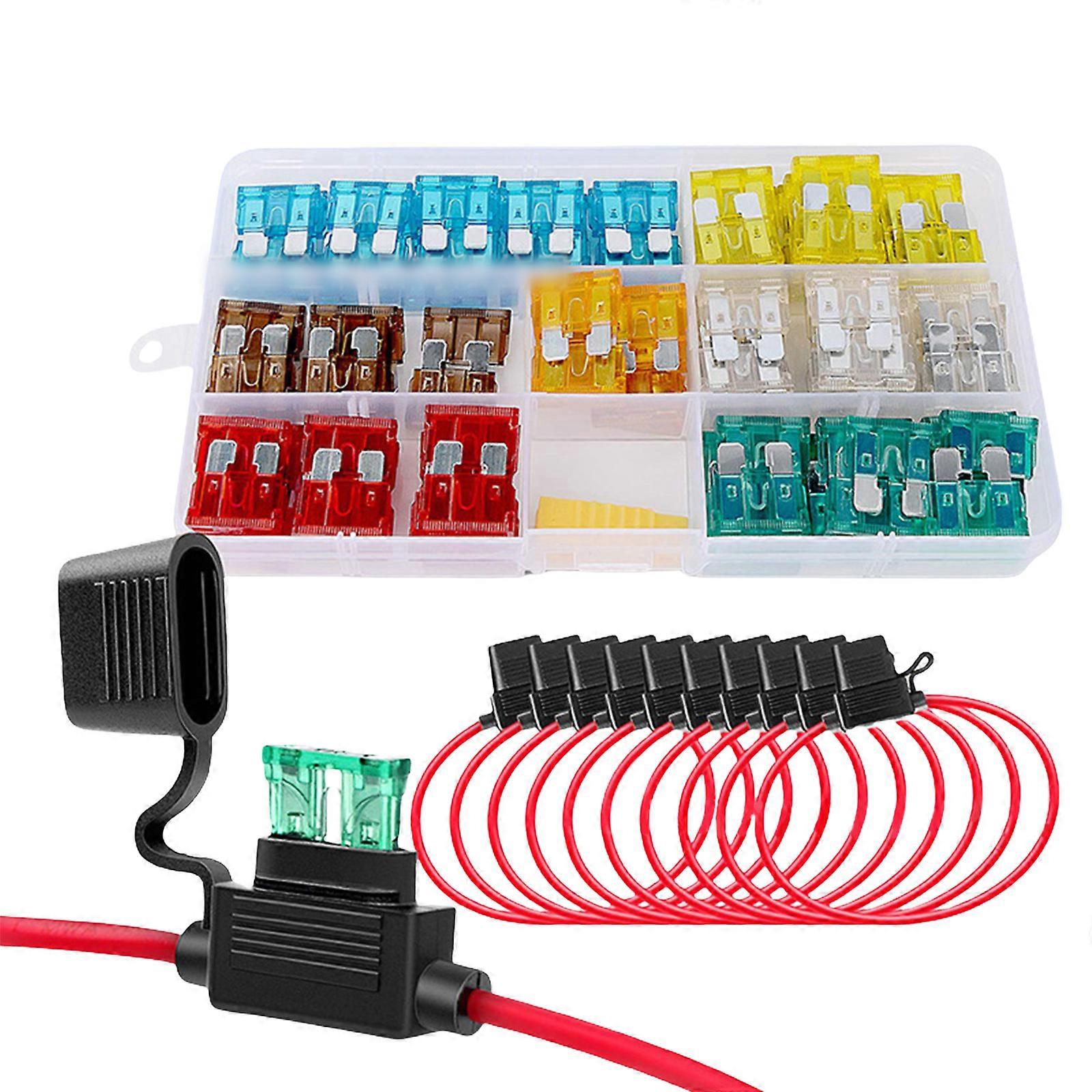 130pcs Automotive Fuses Holders Set Waterproof Inlines Designs with 14 Standard Fuses Portable for Multipurpose Use Multicolor