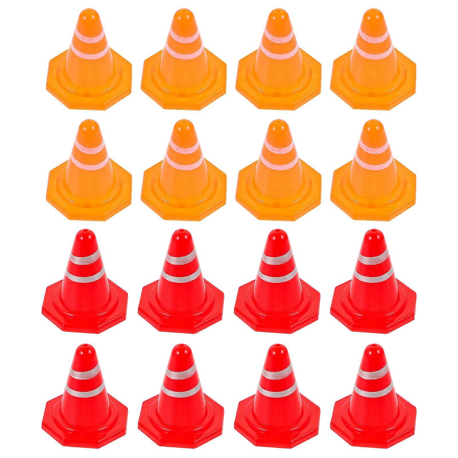 Mini Traffic Cones Road Sign Toys for Decoration 16Pcs Durable Plastic Set