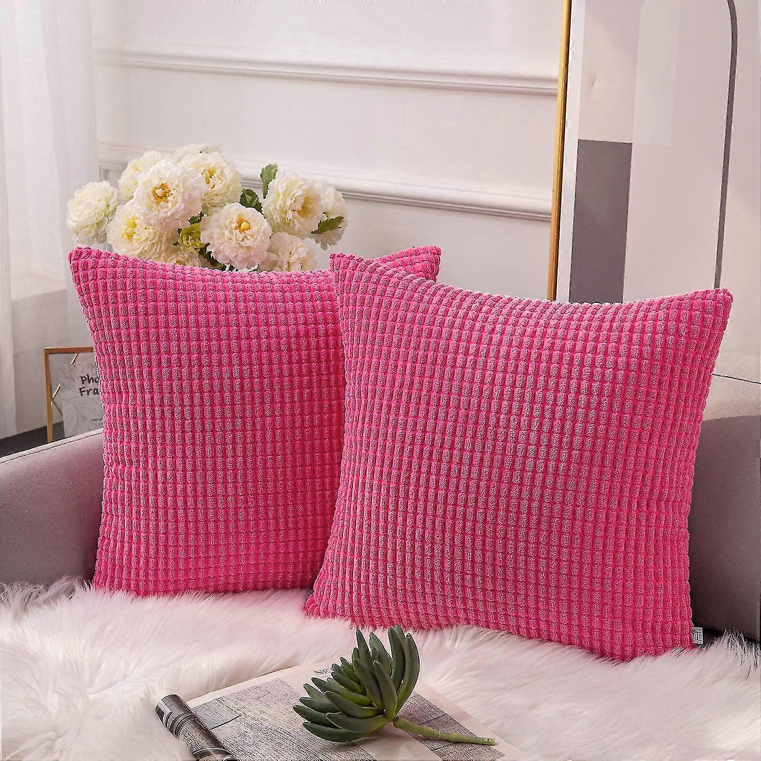 Set Of 2 Soft Pink Corduroy Corn Peel Side Pillow Cushion Covers 22 X 22 Inches