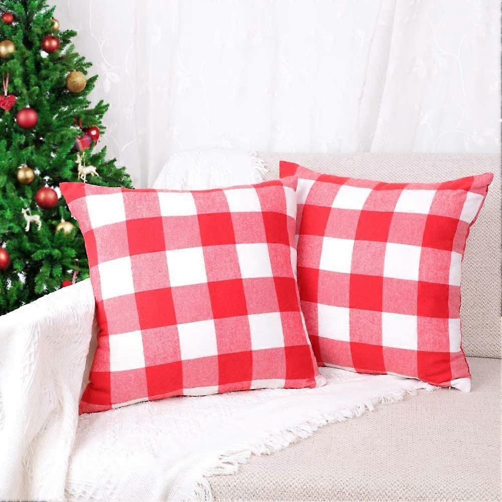 Set of 2 Christmas Buffalo Check Plaid Throw Pillow Covers Cushion Case Polyester for Farmhouse Home Decor Red and White, 18 x 18 Inches