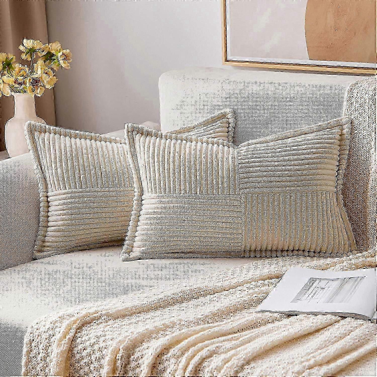 2025 Super Soft Boho Striped Corduroy Pillow Covers Set of 2 with Textured Design for Broadside Decorative Throw Pillows 12 x 20 Inch, Suitable f