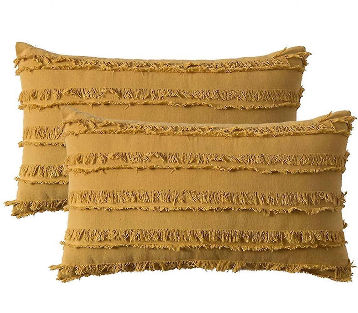 Set of 2 Decorative Boho Throw Pillow Covers Linen Striped Jacquard Pattern Cushion Covers compatible with Sofa Couch Living Room Bedroom