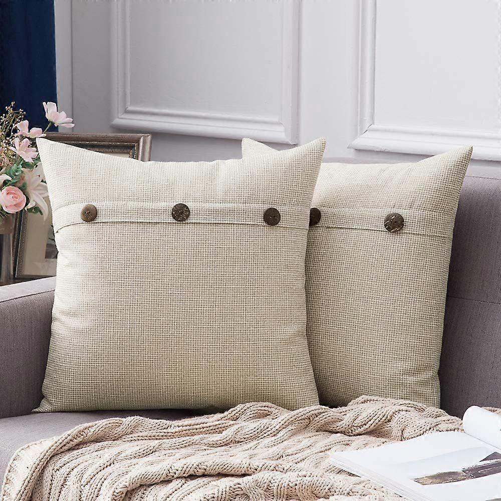 Set of 2 Decorative Linen Throw Pillow Covers Cushion Case Triple Button Vintage