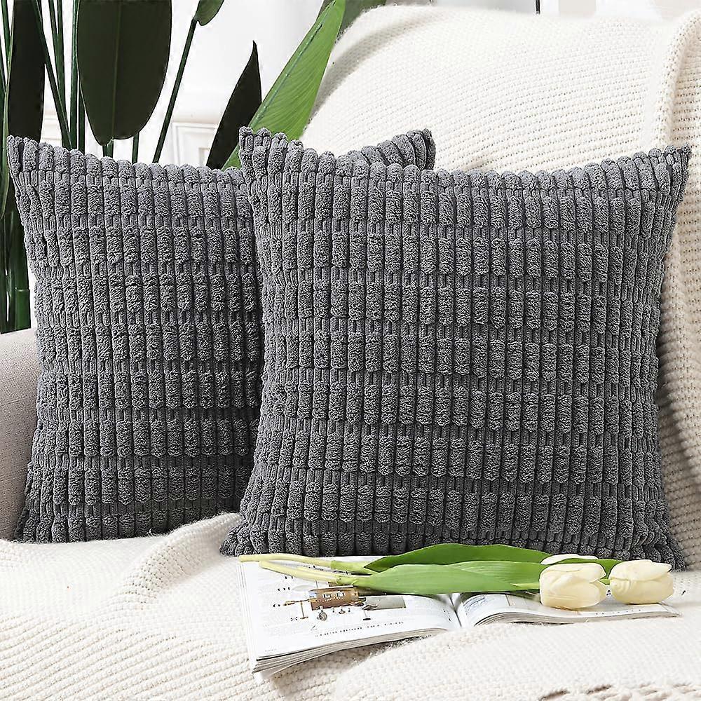 Boho Striped Corduroy Throw Pillow Covers Set Of 2 22x22 Inch For Sofa