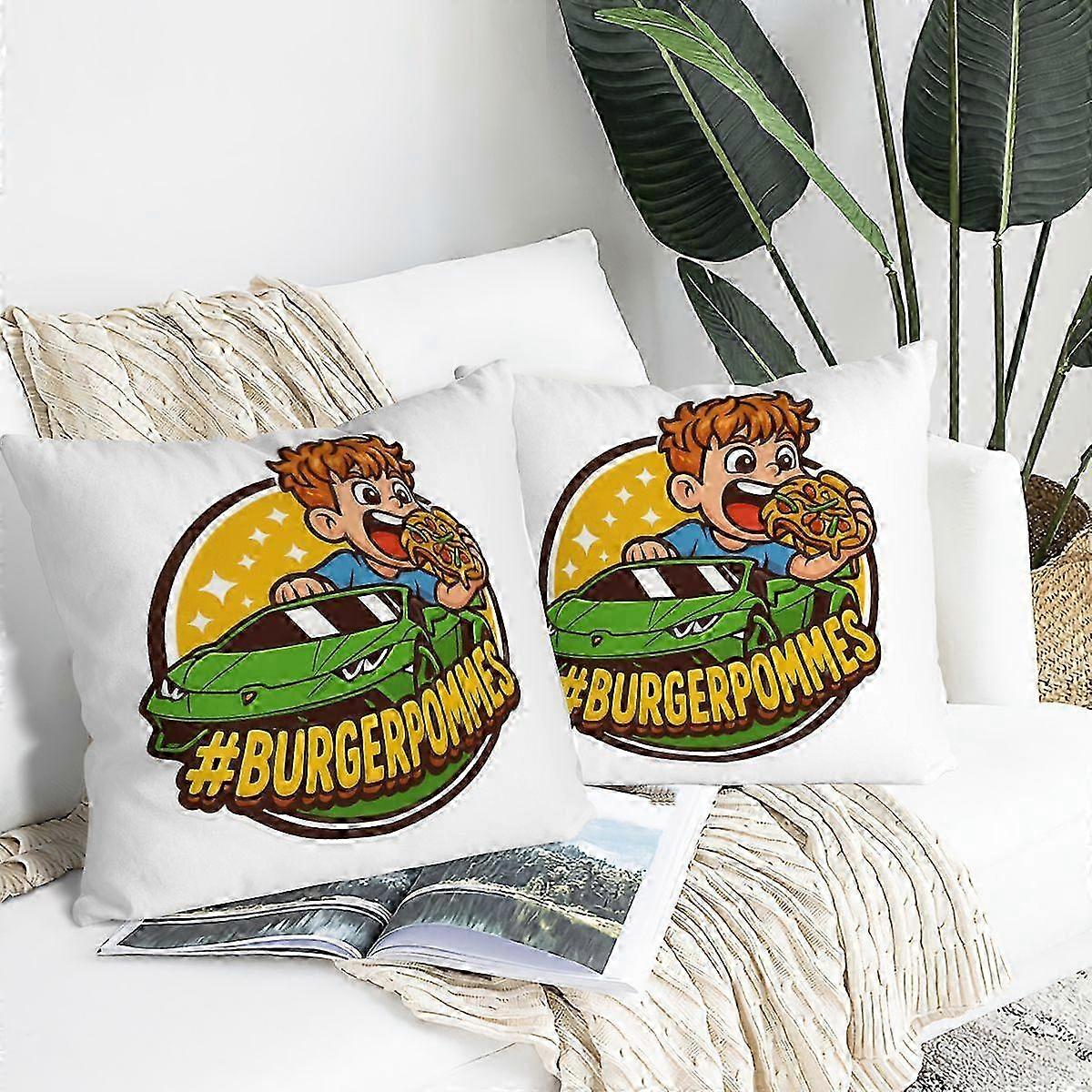 2025 BURGERPOMMES Double-Sided Throw Pillow Covers Set of 2 Cartoon Cushion Cases Water Slide Summer Theme