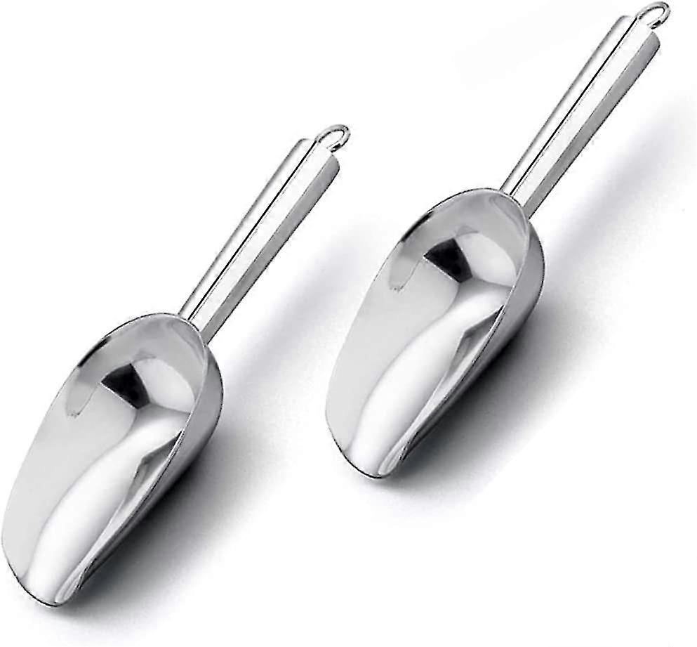 Craftsmanship: The edges are smooth and thick, no burrs, sharp and will not hurt your hands. The simple design makes this spoon elegant. The high quality mirror finish makes it easy to clean. It stays like new and shiny after prolonged use. Design: The slightly curved design of the spoon head and the shallow bowl design of the spoon make it easier to move and load food . The sturdy tubular handle is comfortable to hold, and the small hanging loop is easy to store. [Versatile]: Suitable for indoor and outdoor use, widely used in kitchen, bar, dining room. buffet, party, garden wedding or other occasions. Ideal for food, ice cubes, sweets, candies, etc. It can also be used as a pet spoon or a garden spoon. Meet all your requirements. [Capacity]: The size of this metal spoon is 18.5 x 6 x 9.5cm. Perfect size to put in small coffee canisters or ice buckets. It's the right size to be stored in ice cube trays, bottom coolers and ice buckets. Durable: The small ice shovel is made of 100% high hardness stainless steel and will not bend or rust after use. It has not provided trouble free service for many years. It is non-toxic and healthy for daily use.