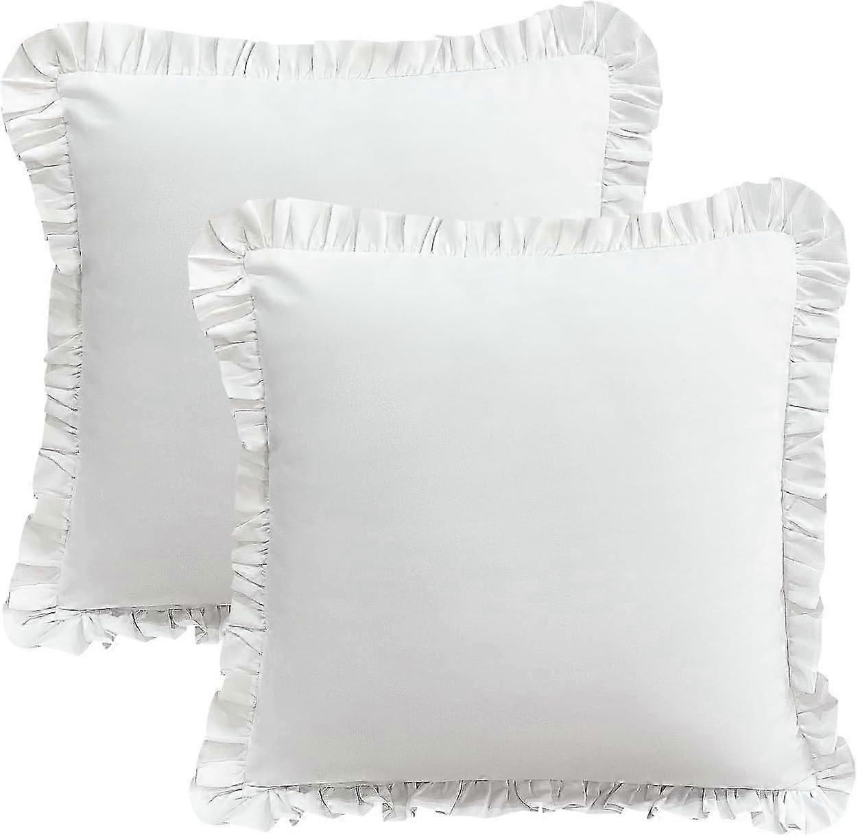 White Ruffle Euro Pillow Shams 26x26 Set of 2 Brushed Microfiber with Envelope Closure