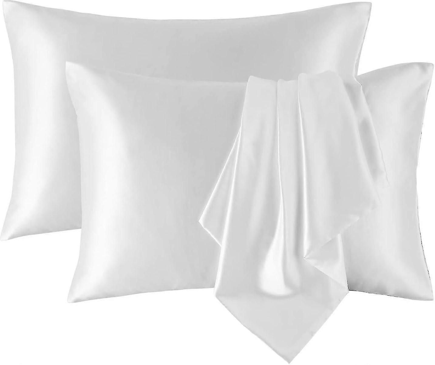 King Size Satin Pillowcase Set of 2, 20x40 Inch, Envelope Closure, Breathable & Skin-Friendly (White)