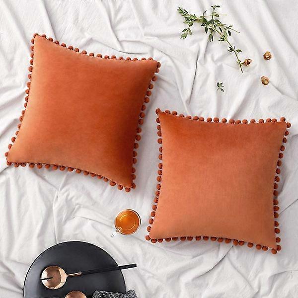 2-pack velvet pillowcases with pompom decorative pillowcases