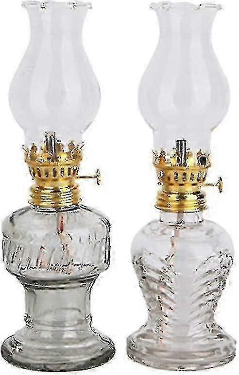 26-27 Antique Kerosene Lamps 8-Inch Tall Set of 2 for Indoor Lighting with Hurricane Glass