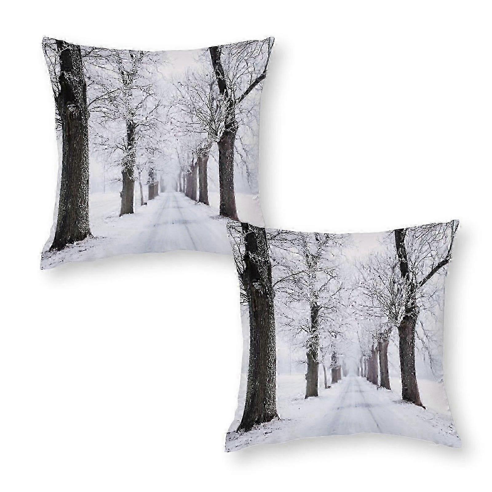 Snowy Pathway Print Pillow Case Set of 2 Pcs