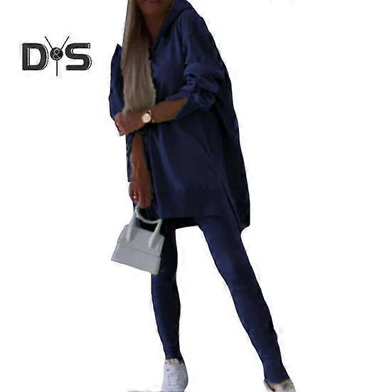 2 Pcs/Set Women Top Pants Set Hooded Long Sleeve Slit Hem Hoodie Stretchy Waist Slim Fit Trousers Sport Fitness Tracksuit