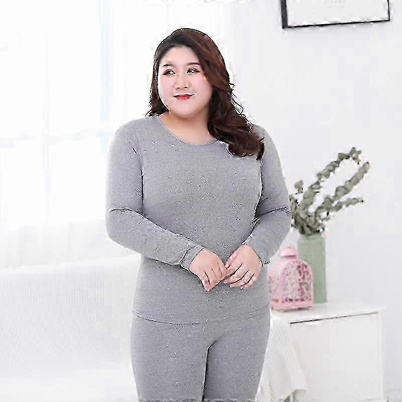 2pcs Warm O Neck Solid Color Thermal Underwear Plus Size Long Johns Women Shaped Sets
