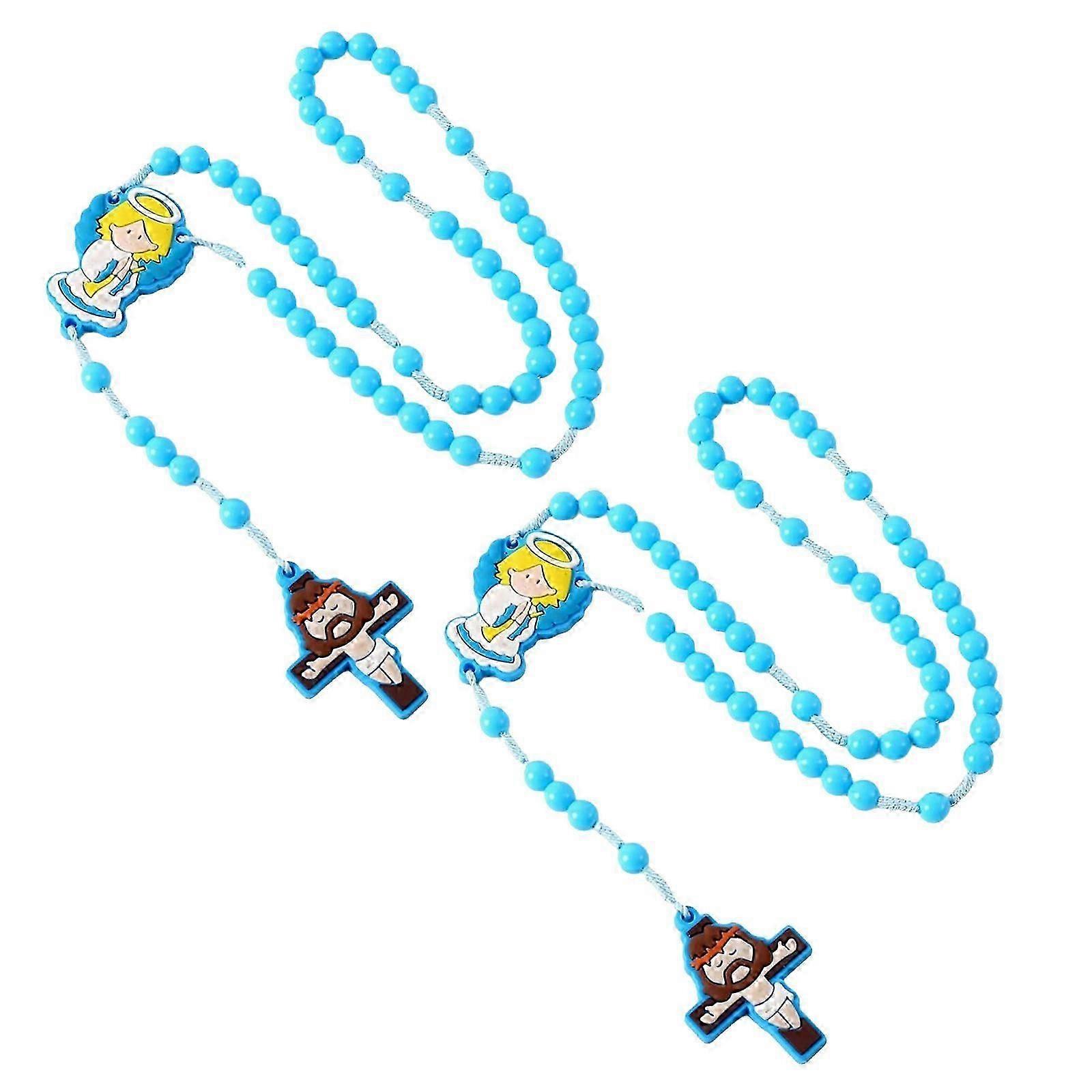 2Pieces Multifunctional Children Rosary Necklace with Crosses Pendant and Colorful Acrylic Beads for Spiritual Growth Multicolor