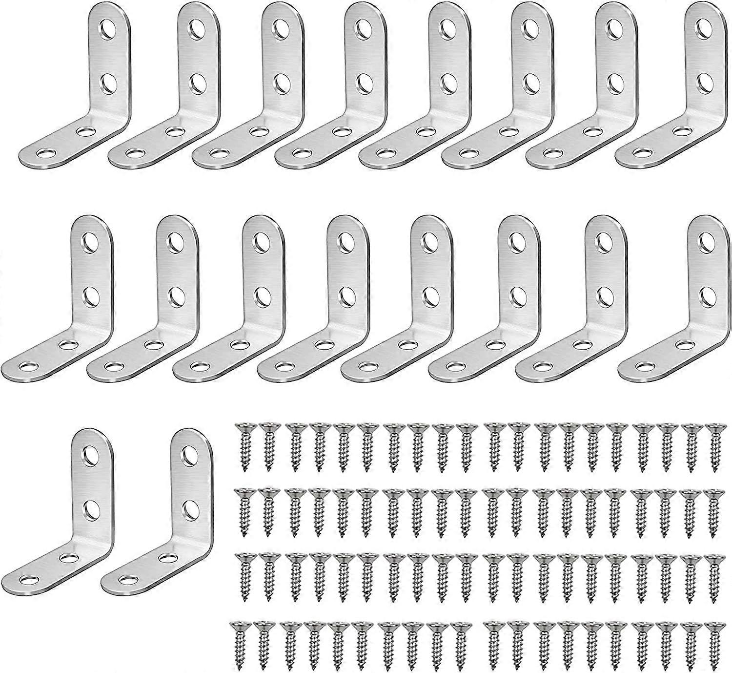 Set of 20 Angle Brackets with Screws, 40 x 40 mm L Shape Brushed Stainless Steel Angle with 80 Screws, 90 Degree Angle, Wood Angle, Brushed Stainless