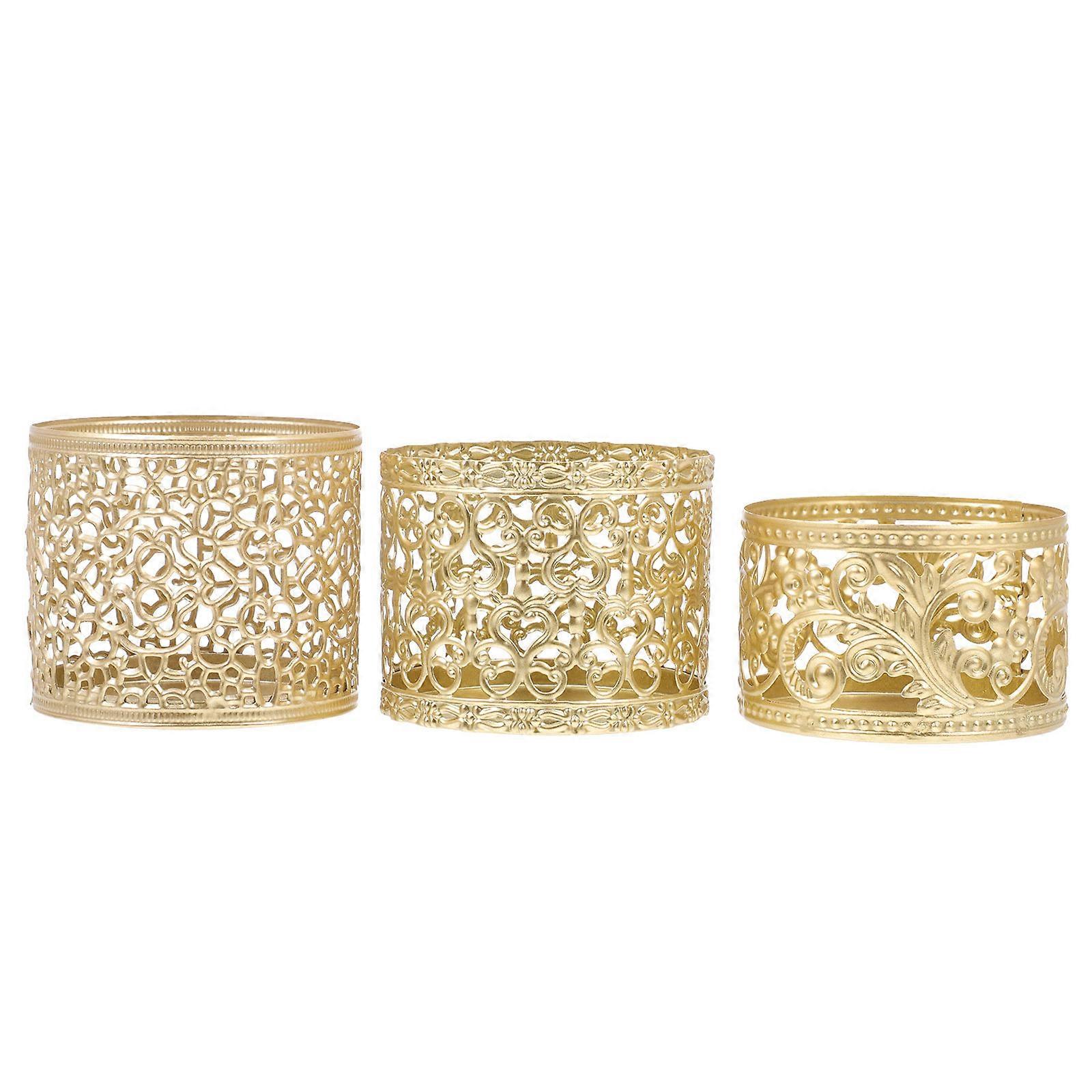 Hollow-out Golden Candle Holder Set Of 3Pcs For Desktop Decoration And Home Decoration With Chic Style
