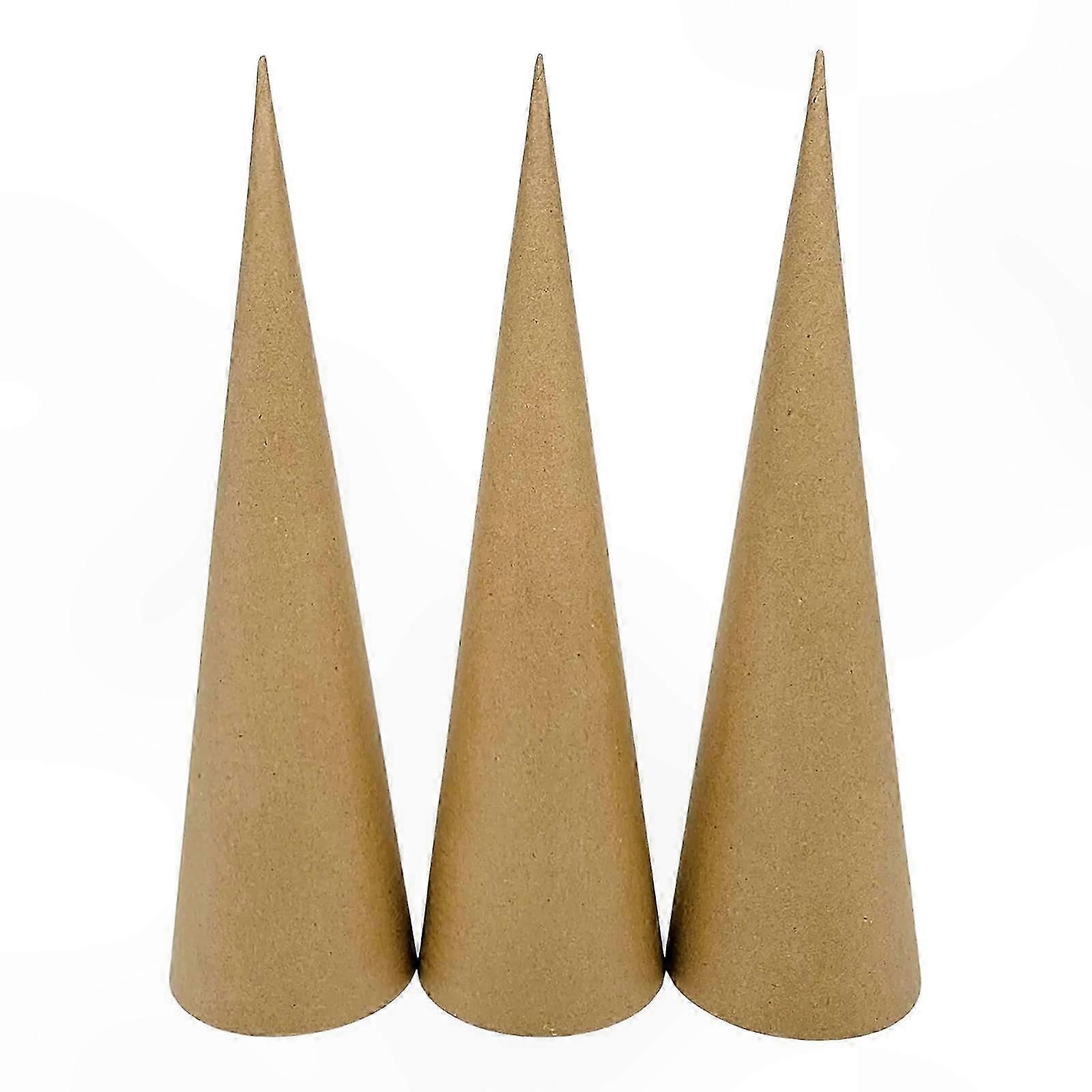 Set of 3 Paper Mache Cones with Open Bottom for Crafting and DIY Projects