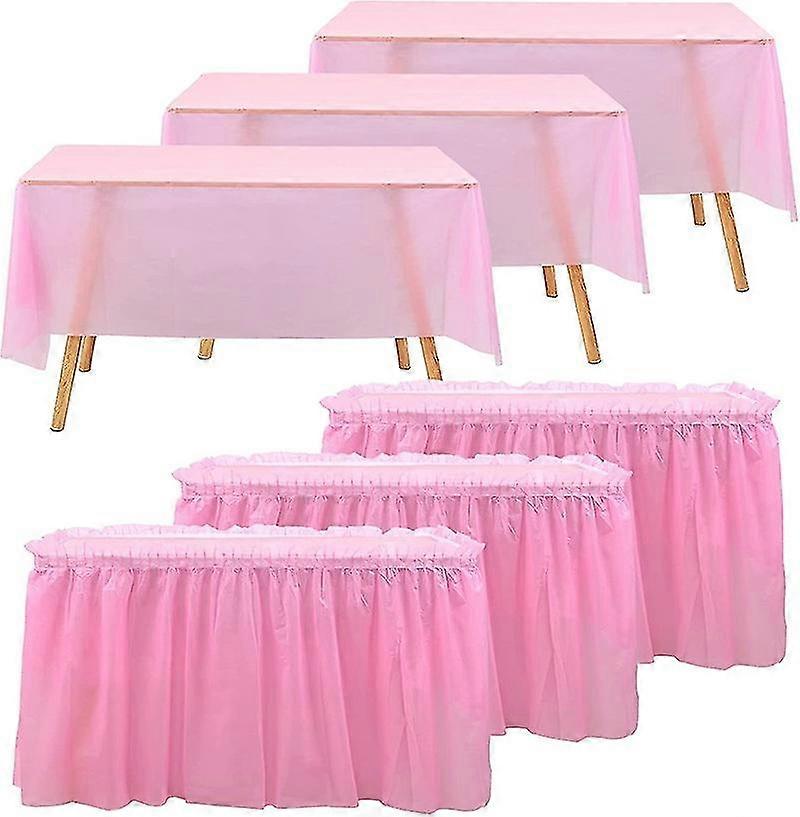 Set Of 3 Pink Plastic Tablecloths Set Of 3 Table Skirts, Rectangular Reusable