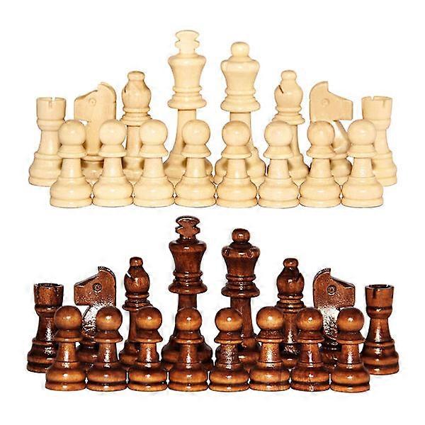 Features: Made of high quality wooden material, durable, beautiful texture and exquisite workmanship. It is suitable for all ages and offers a lot of fun for the whole family. Especially suitable for children to learn and practice, whether at home, in the office, at school, on the road, in the car or on excursions. Suitable for beginners and collectors who love chess, but also adults and children of most ages. Specification: Material: wood Size: As shown Weight: 85 grams Color as shown Package includes: 32 pcs/set of 2.2" wooden chess