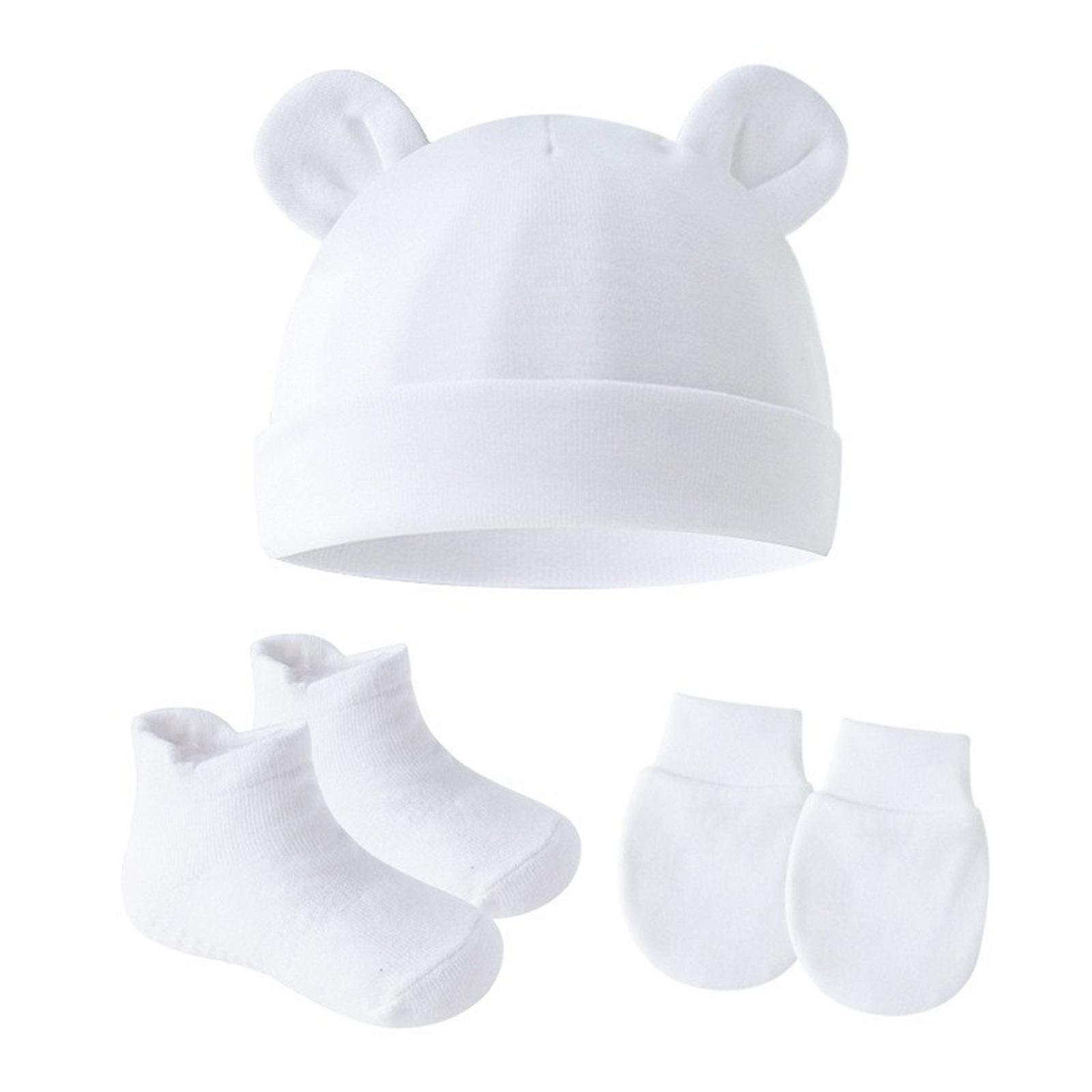 3Pcs/set Newborns Baby Mittens & Turban Hat with Socks, Cotton Gloves & Hat Enjoy Warmth and Protections for Infants White