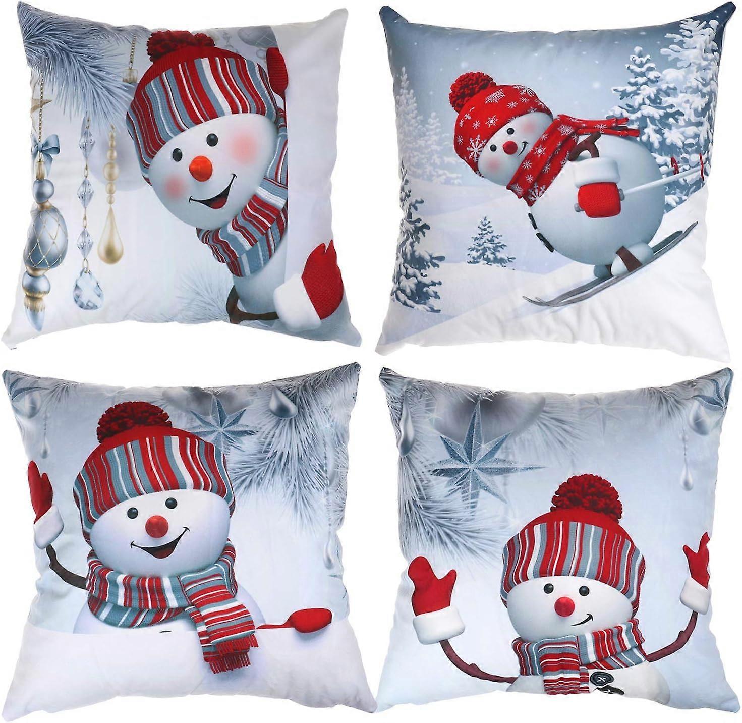Set of 4 White Xmas Pillow Case Winter Cushion Covers for Home Office Bedroom Sofa 18x18 Inch