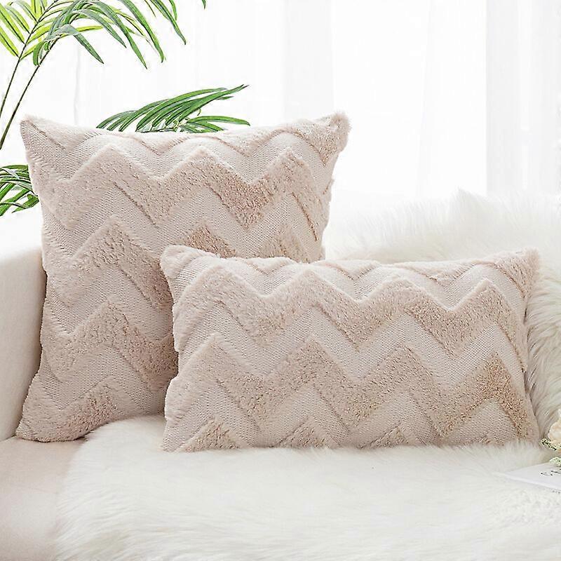 Set of 4 Faux Wool and Velvet Cushion Covers, Soft Plush Decorative Pillowcase with Wavy Pattern, Beige, 45x45CM