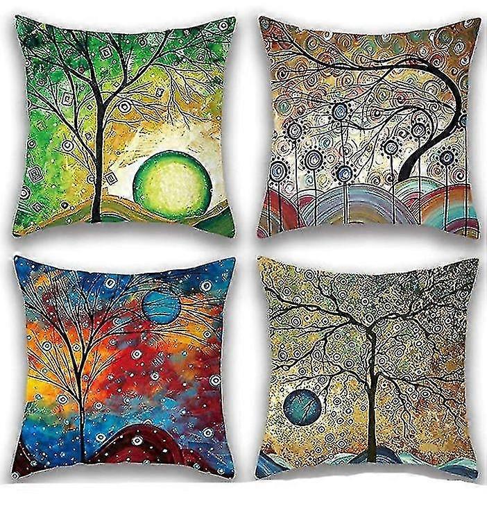 Set Of 4 Cushion Covers 45x45 Cm Colorful Tree Decorative Cushion Linen Couch Cushion Cushion Covers