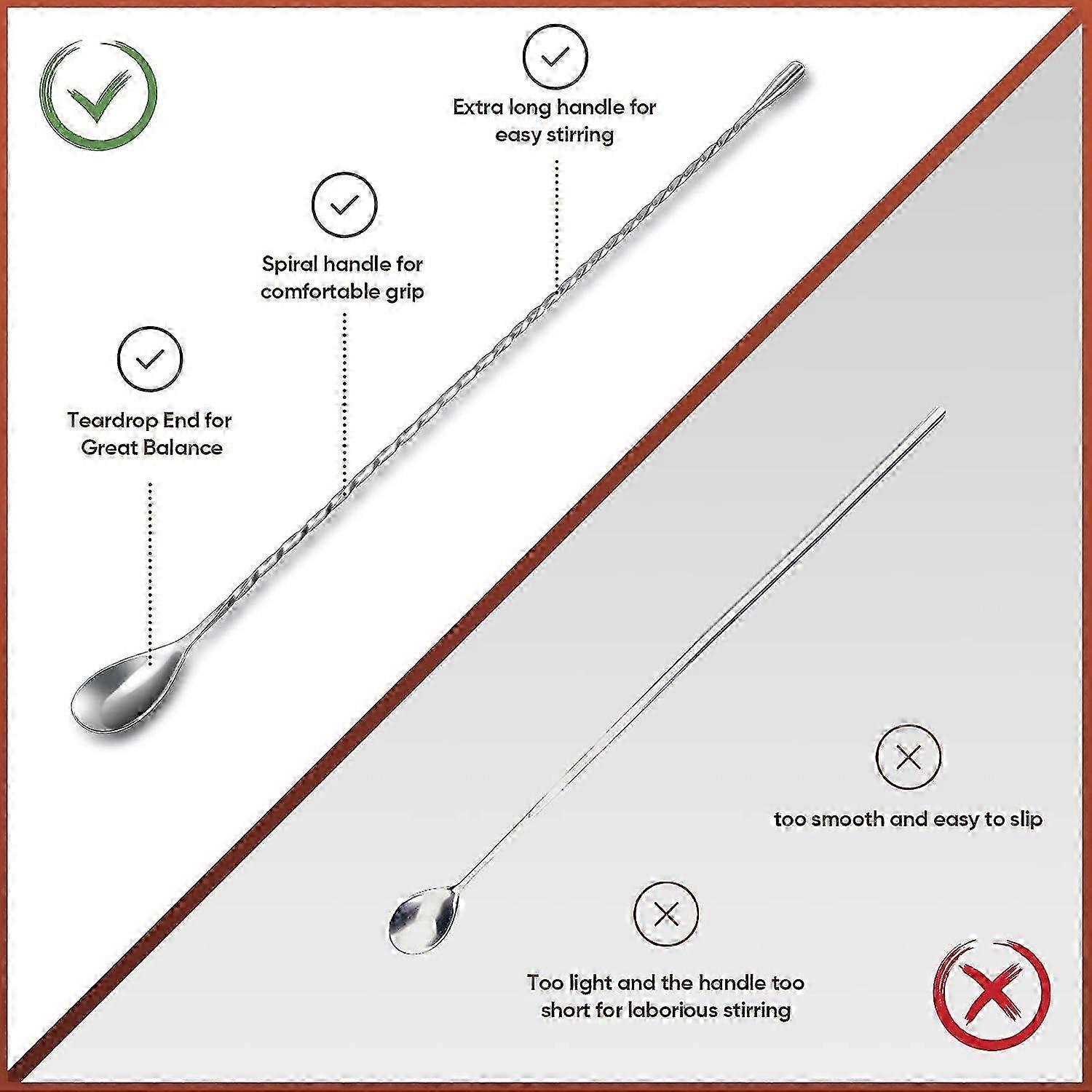 4 Pcs Stainless Steel Bar Spoon for Bar Cocktail Shaker Tall Cups 15.7 Inches 26-27s