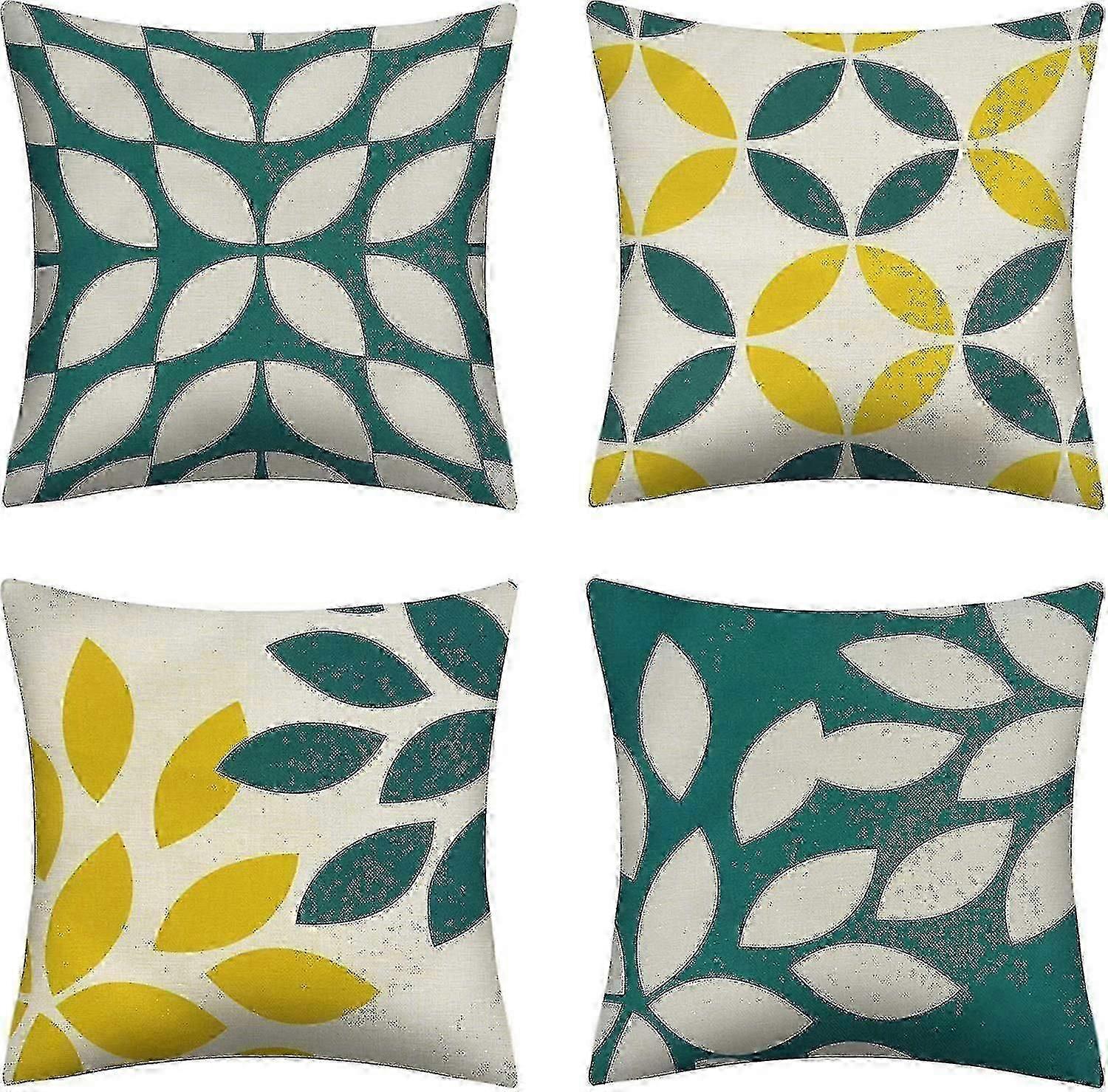 Set Of 4 Cotton Linen Pillow Cases With Invisible Zip