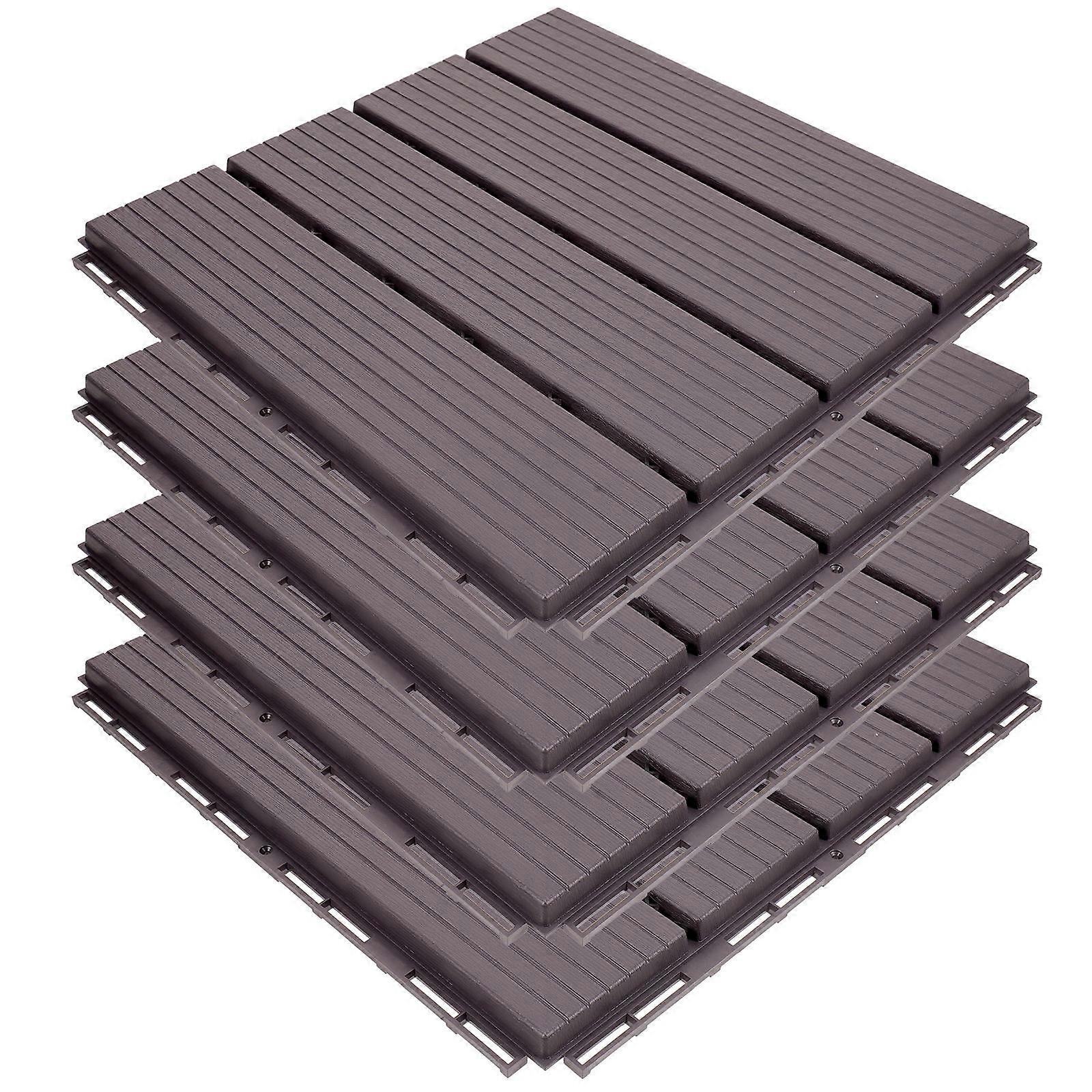 Plastic Imitation Wood Deck Tiles 4Pcs Grey for Outdoor Use with Fade-Resistant Design