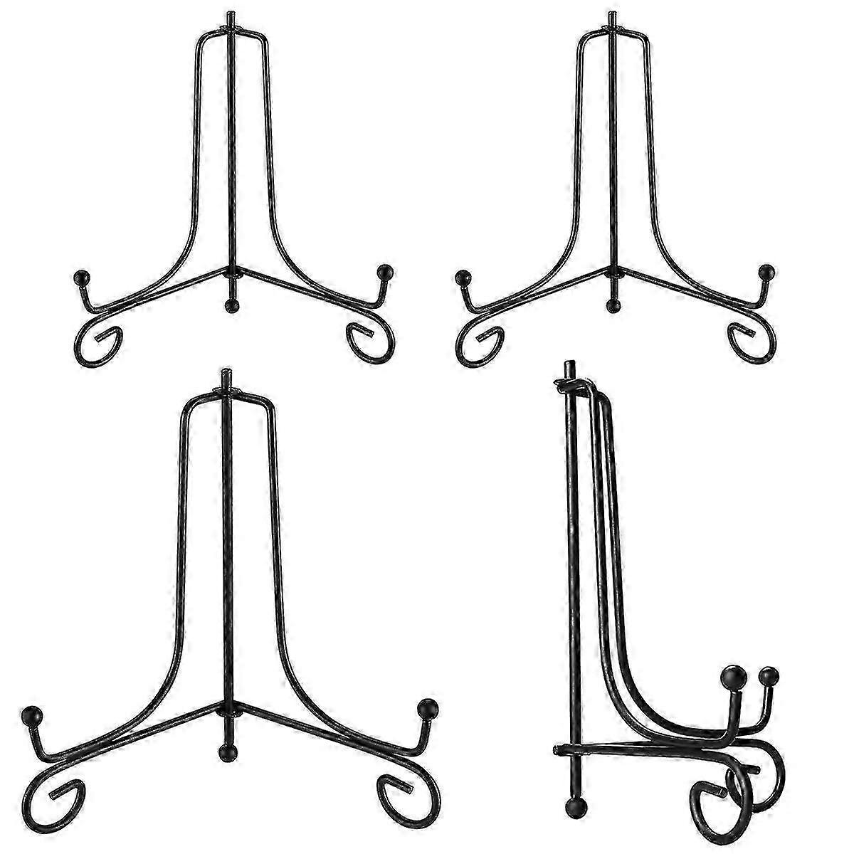 Set Of 4 Iron Plate Stands, 4 Inch And 6 Inch Plate Holder, Stand, Easel Stand, Plates (black)