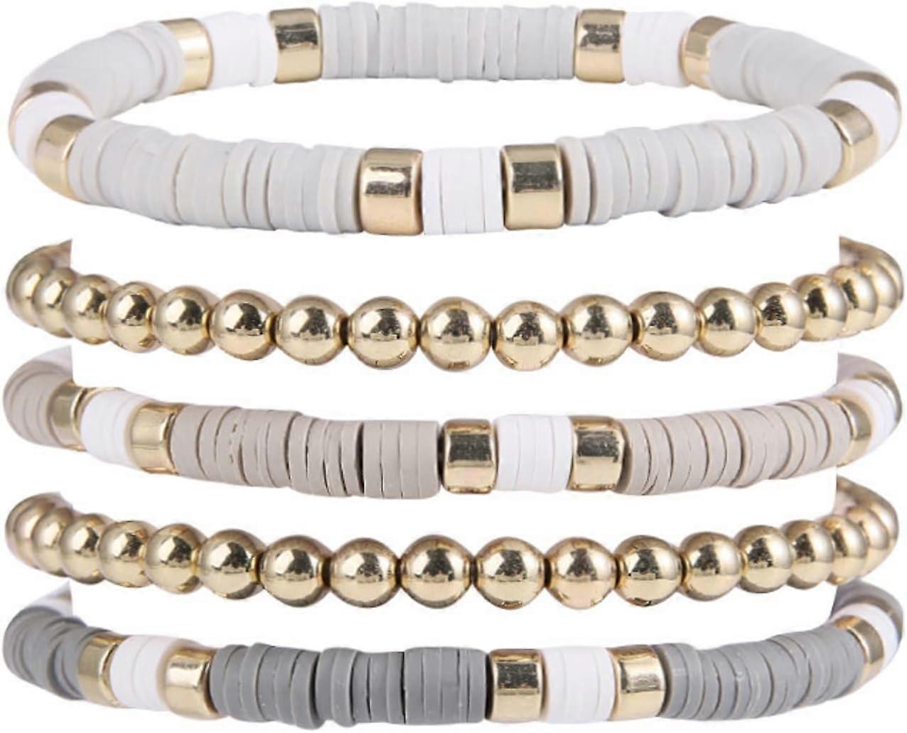 NANAHuang 5Pcs Simple Heishi Surfer Bracelets Set Vintage Boho Colorful Beaded Stretch Bracelets Y2K Clay Stackable Summer Beach Jewelry for Women