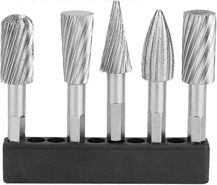 CuttersThis rotary cutters includes 5 pieces unique cutting burrs of varied shapes which allows you to use it for multiple purposes.High QualityMade of premium high speed steel for high hardness, high resistance to abrasion and heat resistance, 1/4 inch shank size is suitable for most electric and cordless drills.Easy to UseHigh quality processing file, smoothness, can process various shapes of molding cavity. Long service life.Widely UsedThis rotary set can be used on aluminum and iron materials. Widely used for cutting, shaping and for removing sharp edges or corners, burrs and excess material.Assurance 1 year warranty, 30 days money back, 7x24 hours by email. Specifications: Material: 4241 high speed steel. Color: as shown in the picture. Hex shank size: 6.35 mm. Other size: as shown. as pictured.Quantity: 5 pieces.Weight: approx. 150g.Contents:5 router bits (cordless drill not included).