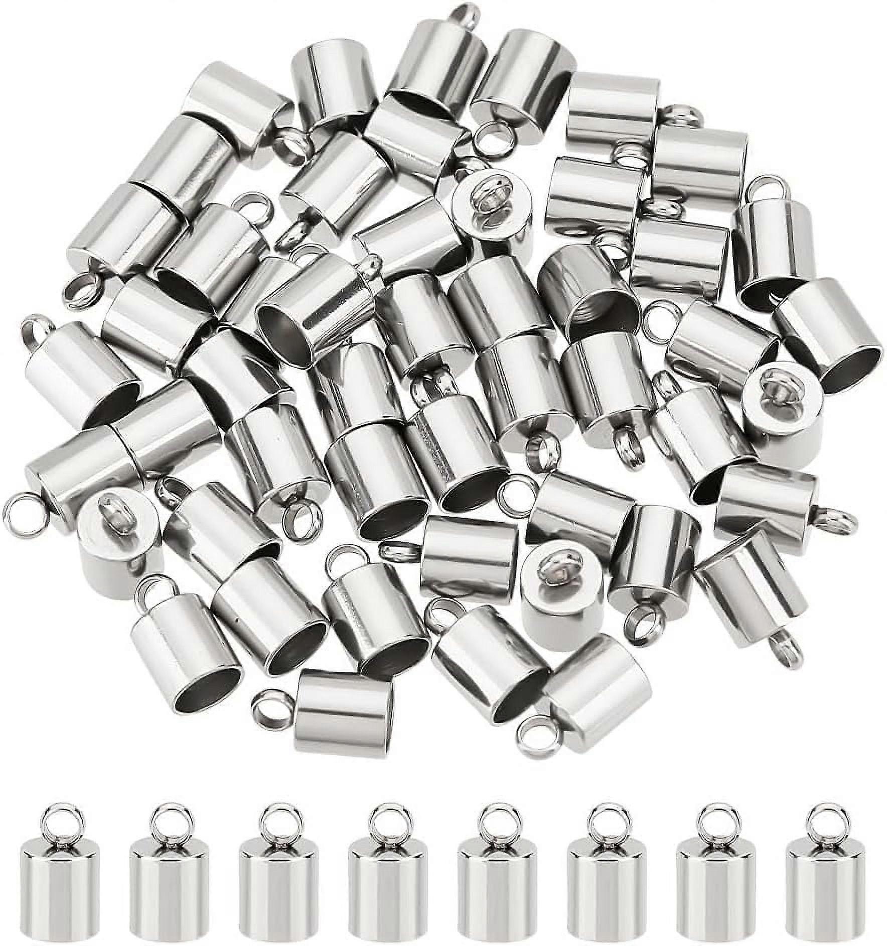 50pcs Stainless Steel Column End Caps, 5mm Inner Diameter, Smooth Cord Terminators for Jewelry Making - Compatible with DIY Kits