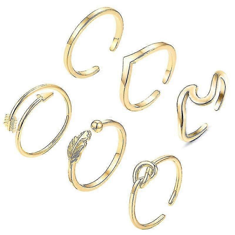6pcs Open Rings Set For Women, Adjustable Finger Joint Thumb Rings, Toe Ring Beach Jewelry Ring For