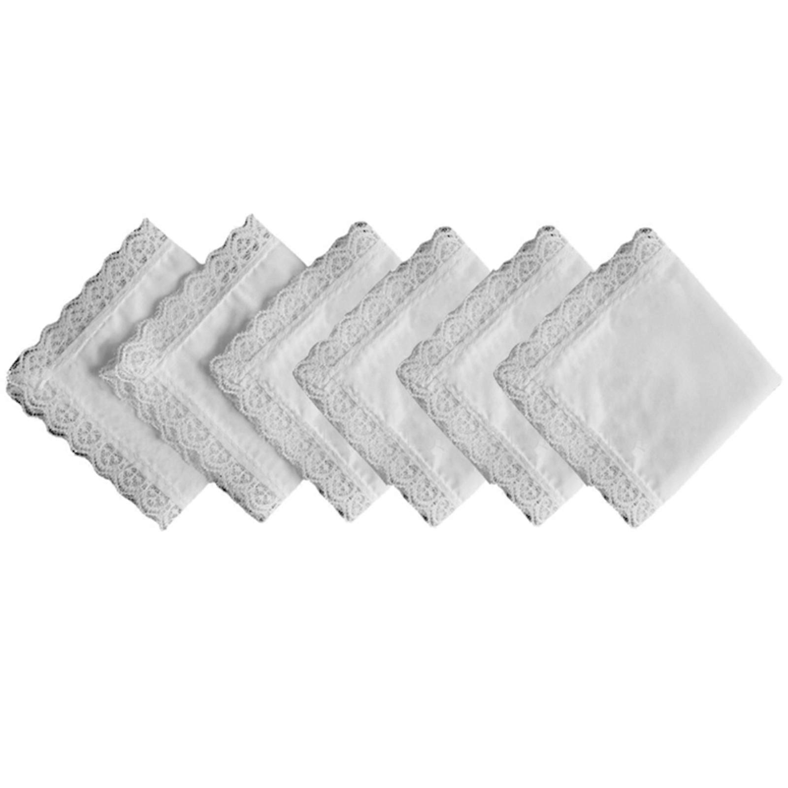 Set Of 6 Women's Lace Trimmed Cotton Handkerchiefs Featurings Flower Embroidery for Special