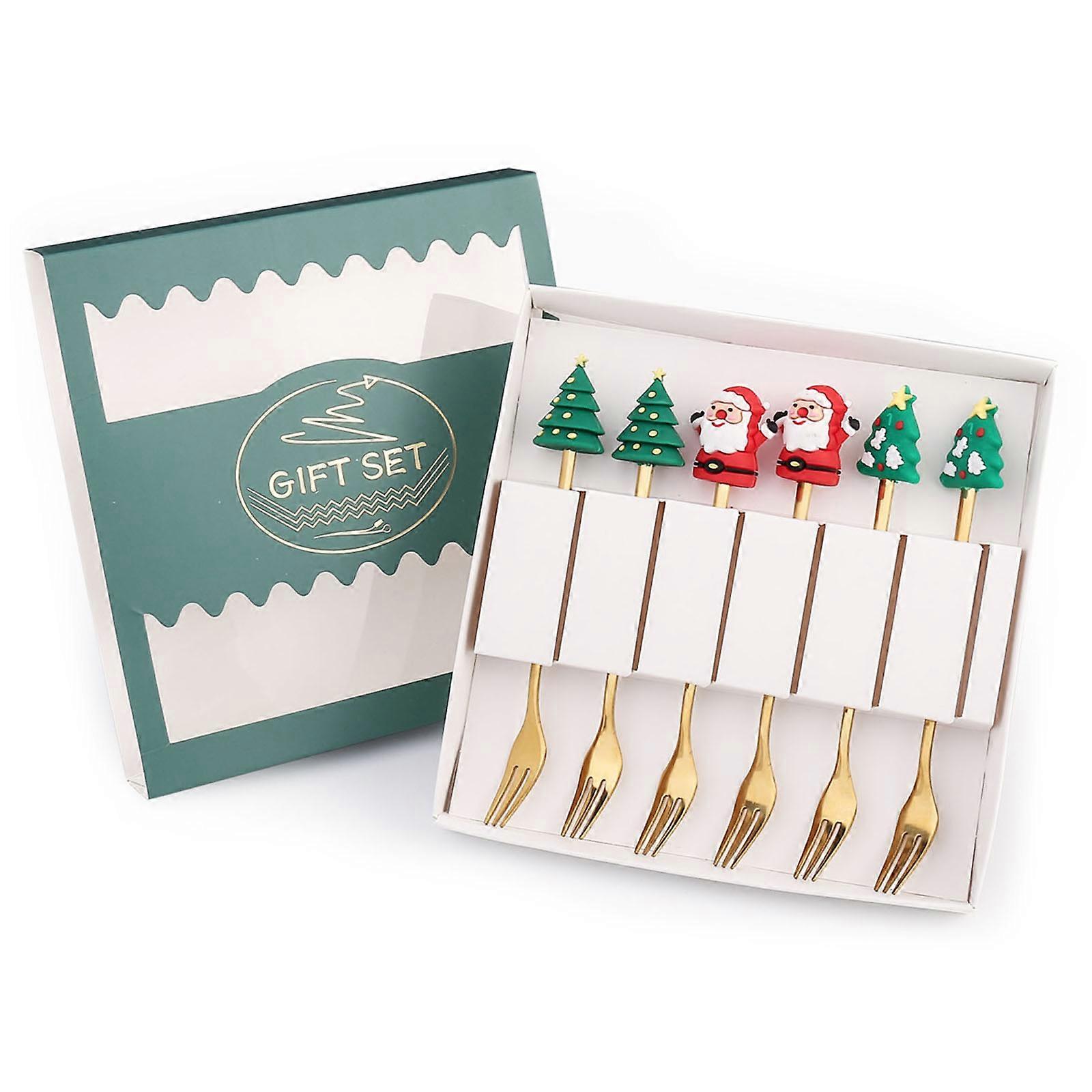 6pcs/set Christmas Spoons Forks with Gift Box Stainless Steel Stirring Coffee Spoon with Xmas Tree Santa Claus Pendant Multicolor