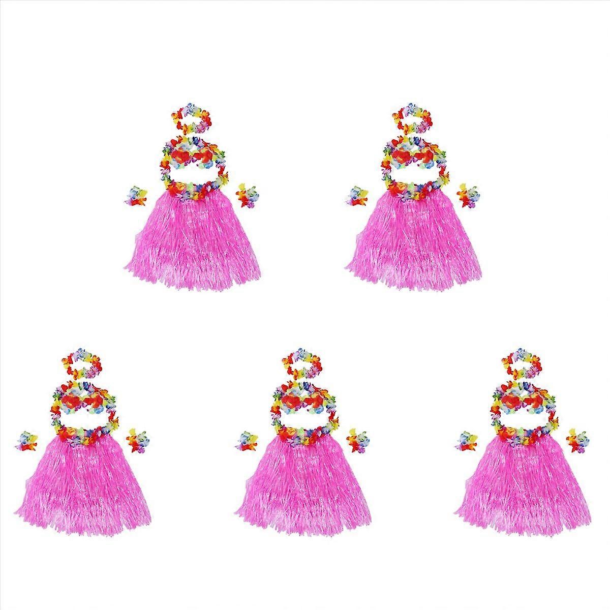 6 Set Hawaiian Grass Skirt flower Hula Lei Wristband Garland Pink